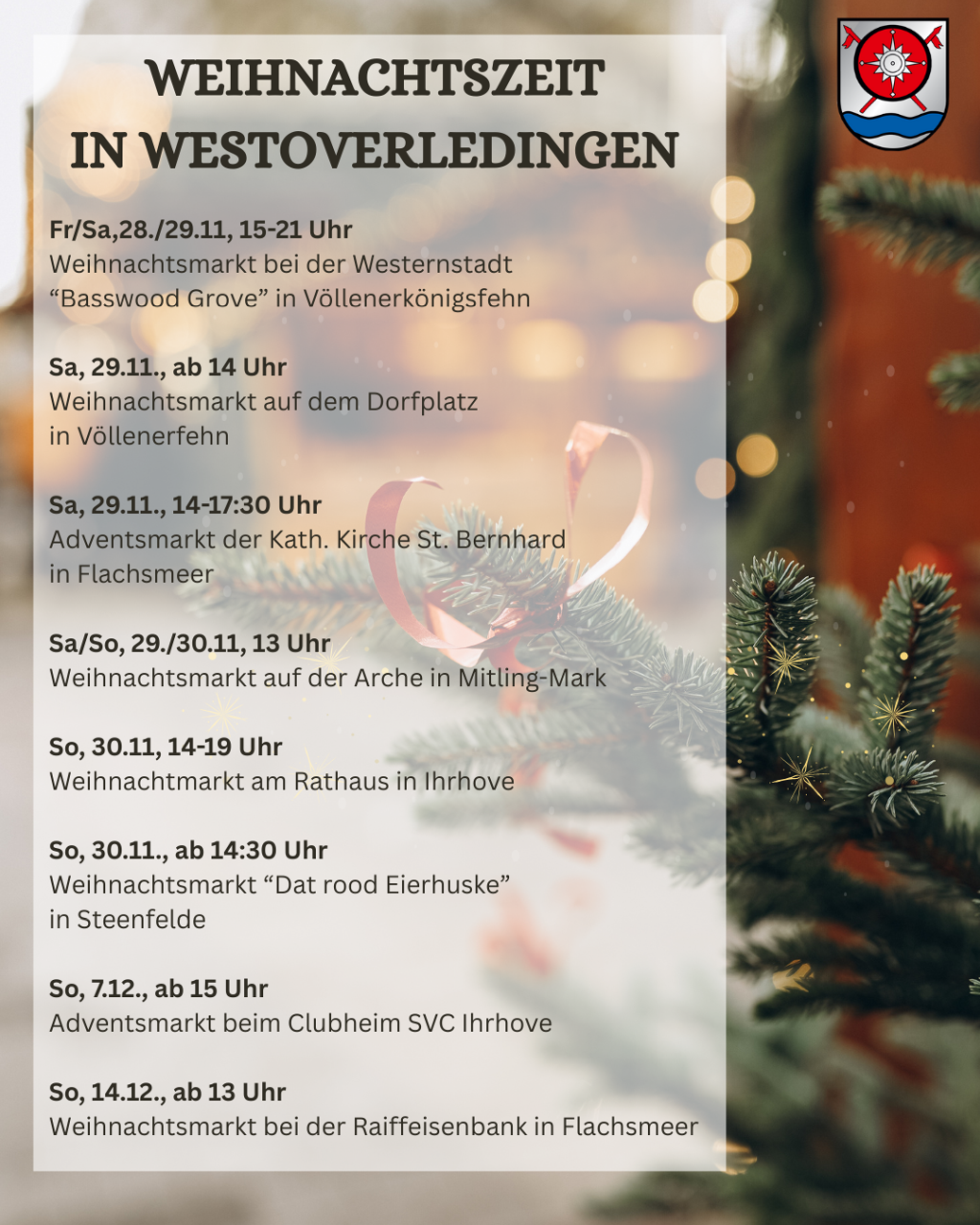 Rentenberatung im RathausDie Gemeinde Westoverledingen bietet eine Beratung in Rentenangelegenheiten an. Diese findet jeden Dienstag in der Zeit von 9:00 Uhr bis 12:00 Uhr im Besprechungsraum 1 im Rathaus [...]