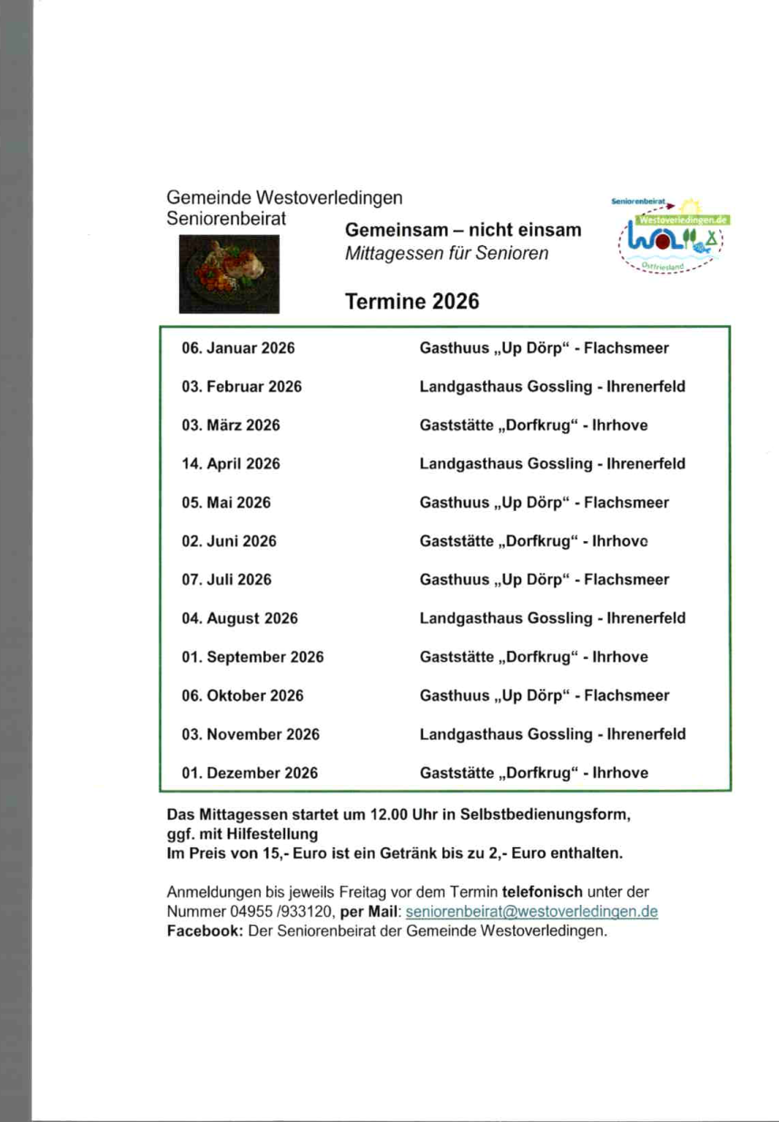 Seit dem 2017 hat die Gemeinde einen Seniorenbeirat. Sieben Personen bilden dieses ehrenamtliche Gremium, dass die Gemeinde in Angelegenheiten beraten soll, die älteren Mitbürgern wichtig sind. Im Oktober 2021 wurde ein neuer Seniorenbeirat gewählt. Dieser setzt sich aus folgenden Personen zusammen.