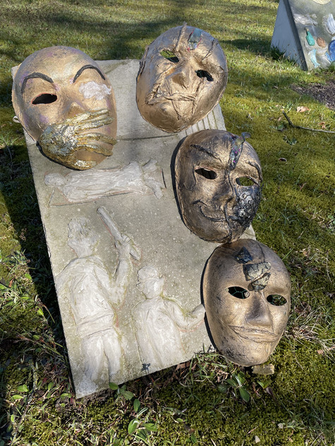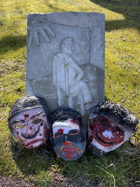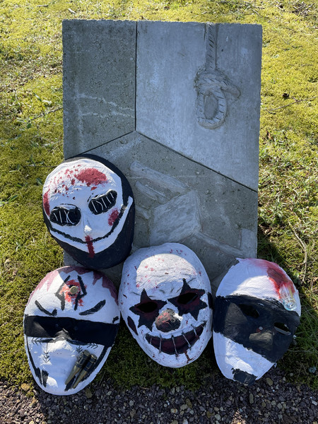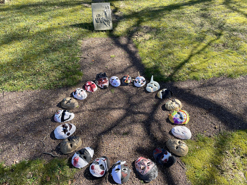 Die Masken wirken bedrohlich und gruselig. Die Masken sollen zeigen was damals passiert ist. Und sollen im Bezug auf das Schicksal von Walter Emil Köster sagen, dass er die Geschichte nicht mehr selbst erzählen kann und wir alles dafür tun sollten, damit so etwas nicht nochmal in der heutigen Zeit passiert. Und wenn so etwas passieren sollte man nicht schweigen darf. Deswegen haben wir als Erinnerung die Masken gemacht.