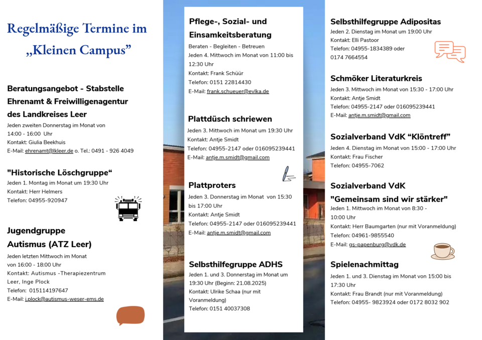 Die neuen Räumlichkeiten im "Kleinen Campus” werden von der Gemeinde Westoverledingen zusätzlich als Treffpunkt für verschiedene Gruppen und Vereine zur Verfügung gestellt.