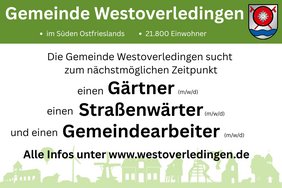 Die Gemeinde Westoverledingen sucht zum nächstmöglichen Zeitpunkt für ihren Bauhof zwei Gemeindearbeiter (m/w/d) in Vollzeit, unbefristete Stellen.