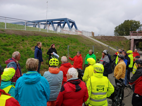 Die einzelnen Punkte wurden von Bürgermeister Theo Douwes, Fachbereichsleiter Marco Smid, der Mobilitätsbeauftragten Tomke van Lessen, der Klimaschutzmanagerin Lisa Henken und der Pressesprecherin Kirsten Beening jeweils kurz erläutert und gestellte Frage beantwortet. Mitglieder des ADFC Westoverledingen halfen während der Radtour bei der Absicherung der Strecke.