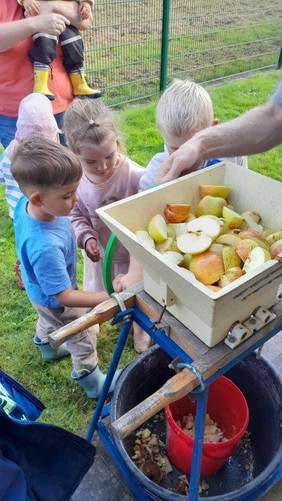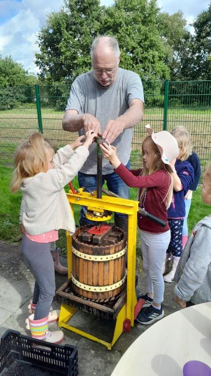 Im September fand in mehreren Grundschulen und Kindertagesstätten der Gemeinde Westoverledingen die Aktion „Wie entsteht Apfelsaft?“ statt. Unter der Leitung von Ratsmitglied Wolfram Höhn stellten die Kinder mit einer mechanischen Apfelpresse eigenen Apfelsaft her. Die Äpfel stammten von Streuobstwiesen in Steenfelde und Ihren. Den Kindern machte die Aktion viel Spaß. Alle halfen mit Begeisterung beim Waschen, Schneiden und Pressen der Äpfel mit und konnten hinterher stolz ihren selbstgemachten Apfelsaft probieren.