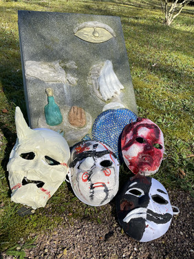 Die Klasse entschied sich dazu, die Geschichte von Emil Walter Köster mit erschreckenden Masken darzustellen. „Hierbei symbolisieren die Masken nicht nur die Grausamkeit jener, die Leid über Emil brachten, sondern auch das Verstecken der eigenen Persönlichkeit“, erläutern die Schüler.
