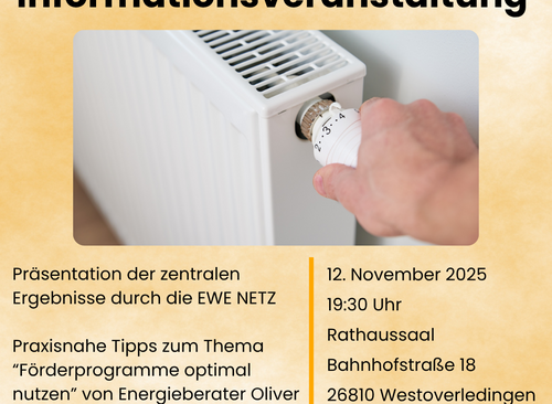 Die Gemeinde Westoverledingen lädt alle interessierten Bürgerinnen und Bürger herzlich zu einer Informationsveranstaltung zur kommunalen Wärmeplanung ein. Die Veranstaltung findet [...]